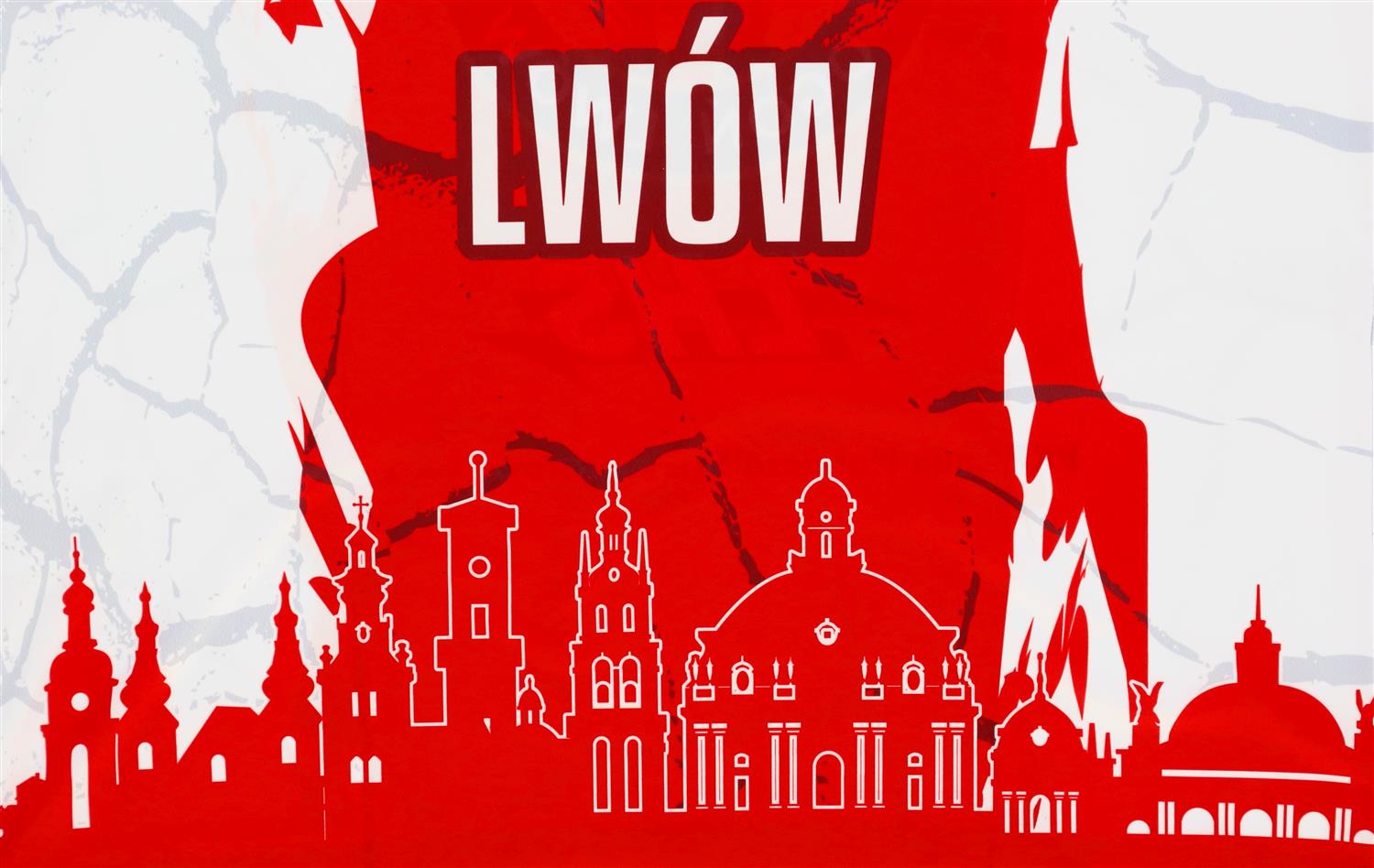 Koszulkę wyjazdową Pogoni Lwów charakteryzują 3 pionowe pasy w biało-czerwono-białych barwach. Na tyle trykotu znajduje się zarys lwowskich budynków.
