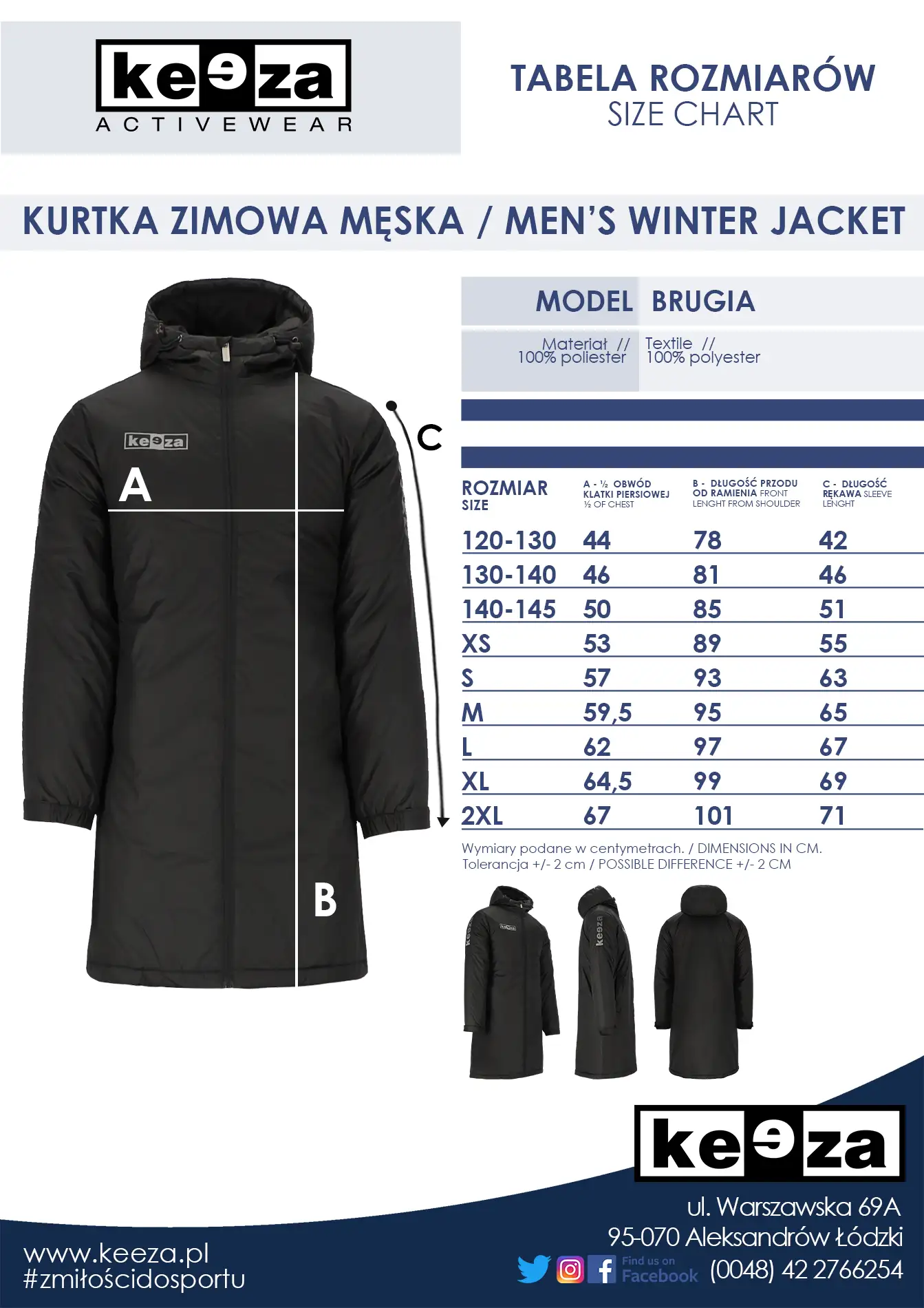 Ciepła, długa, sięgająca do ud kurtka zimowa o klasycznym kroju. Kurtka posiada logo keeza na piersi oraz na ramionach. Dwie zamykane na suwak boczne kieszenie wykonane są z miłego w dotyku materiału. Produkt posiada także kieszeń wewnętrzną, regulowany stoperami kaptur oraz regulowane rzepem mankiety. Syntetyczne wypełnienie kurtki gwarantuje zachowanie odpowiedniej temperatury ciała.